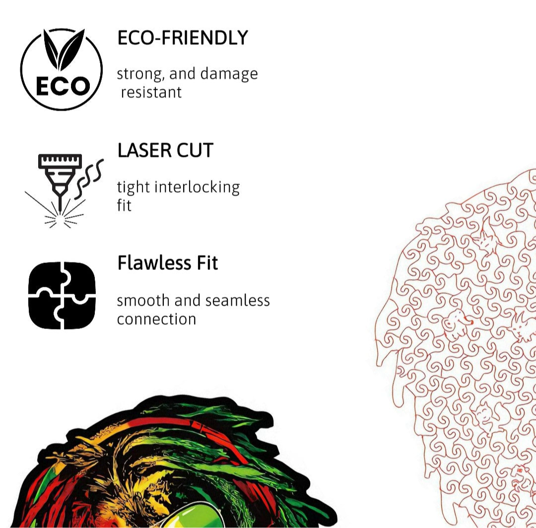 โข ๐ฆ 266-piece Rasta Lion โ A Tribute to Bob Marley wooden puzzle